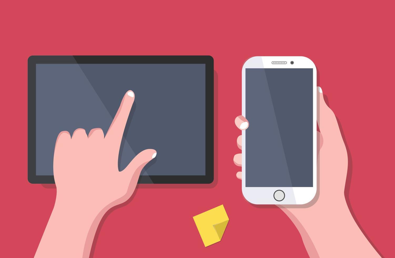 Illustration Tablet Smartphone Stick Note Touchscreen Modern Device Technology Gadget Minimal Portable Flat Icon Concept Office Business Digital Display Workspace Template Pro Vector