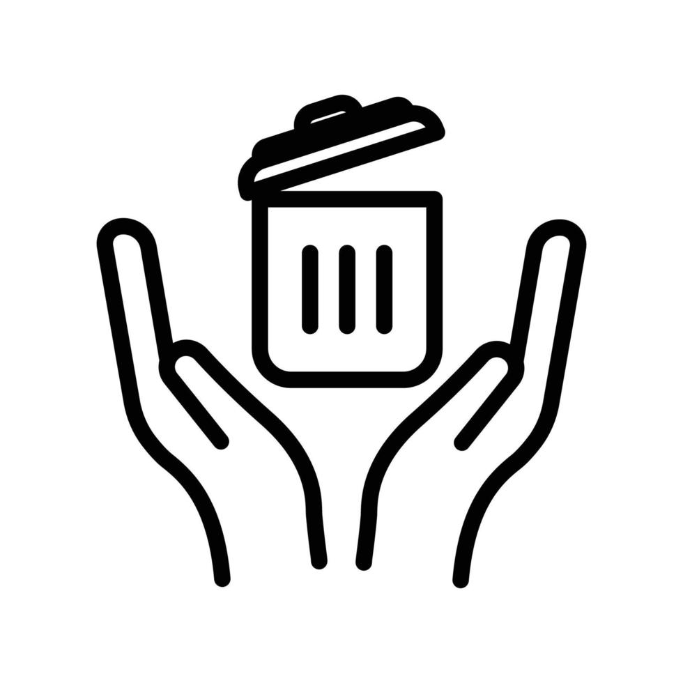 Trash can icon vector with hand. Cleanliness, Throw garbage in its place, environmental cleanliness, healthy environment. line icon style. Simple design illustration editable Pro Vector
