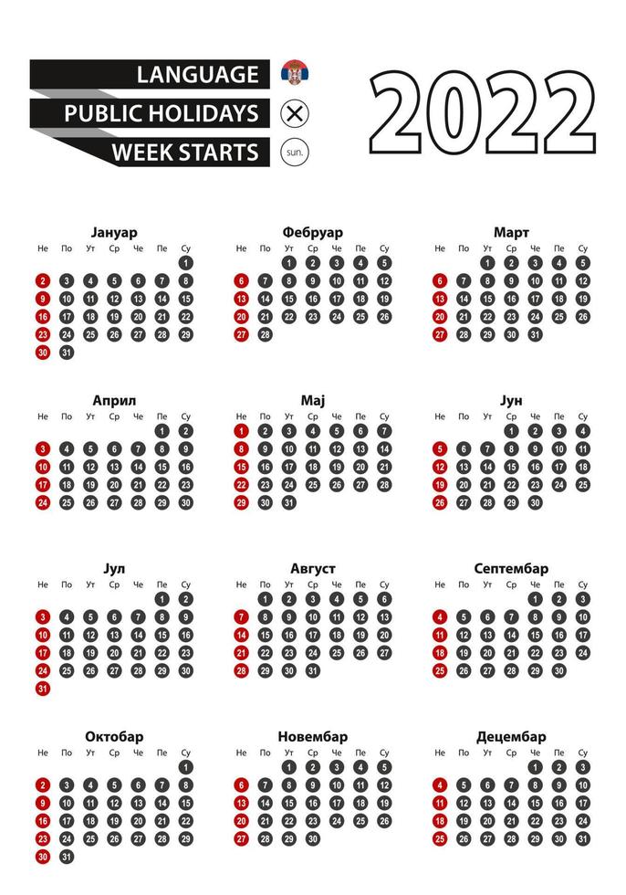 Serbian calendar 2022 with numbers in circles, week starts on Sunday. 2022 with flag of Serbia. Pro Vector