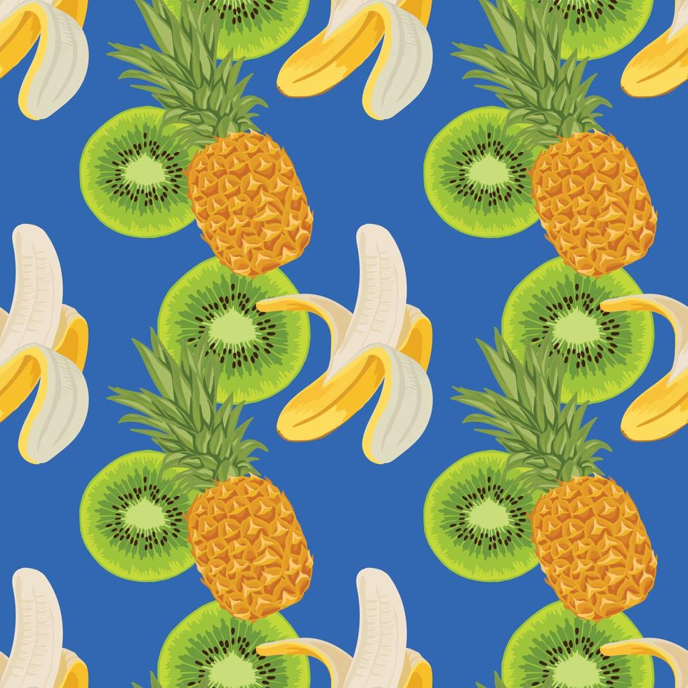 banana pineapple and kiwi seamless pattern design on bule background Pro Vector