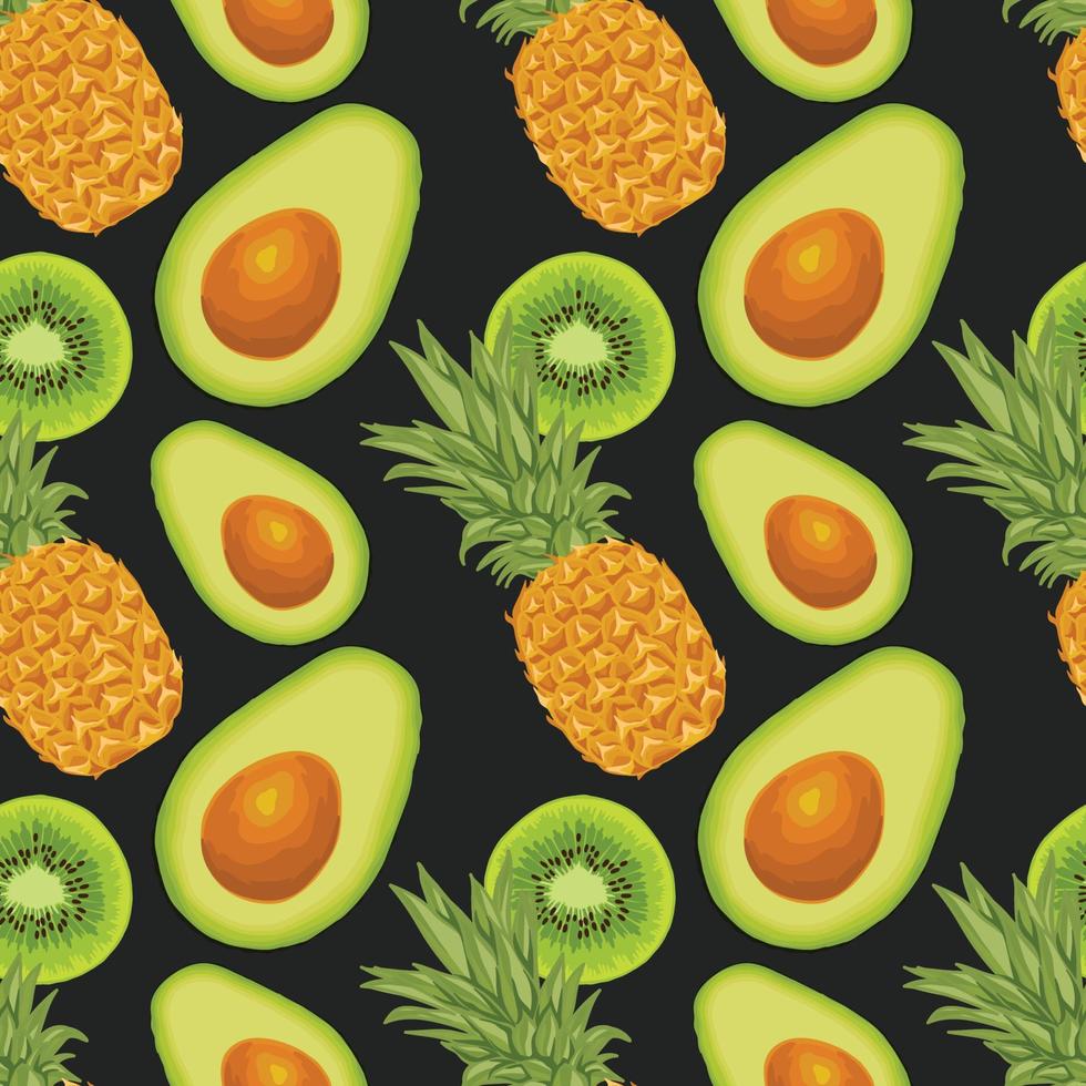 kiwi pineapple and avocado hand draw seamless pattern design vector
