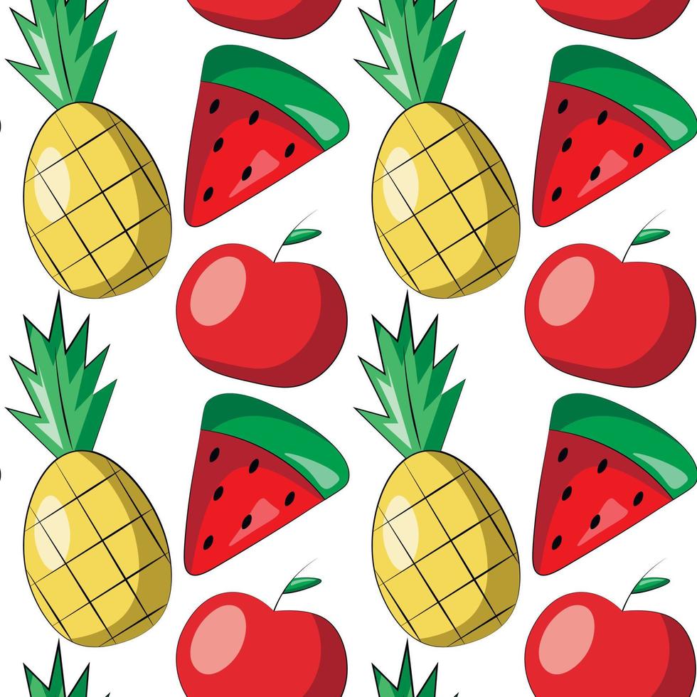 Seamless vector pattern with apple, watermelon and pineapple Pro Vector
