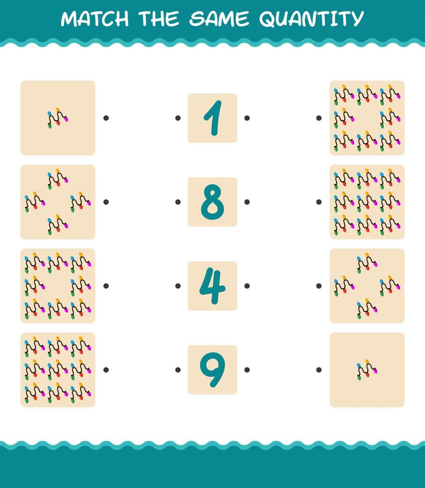 Match the same quantity of string light. Counting game. Educational game for pre shool years kids and toddlers Pro Vector