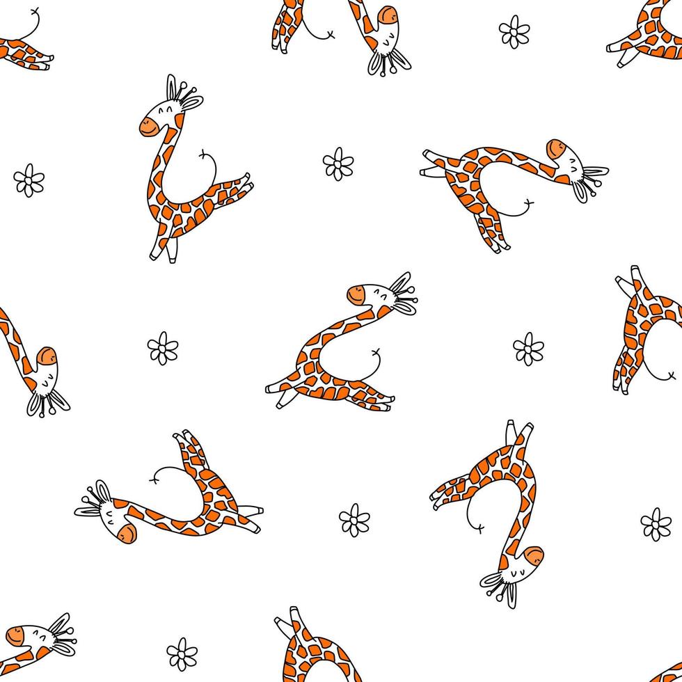 Seamless pattern with a happy running giraffe, isolated in the style of doodles. Pro Vector