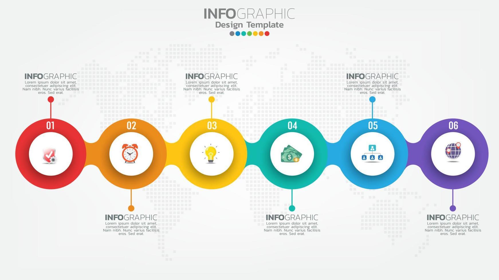 Timeline infographics template with 6 elements workflow process chart. Free Vector