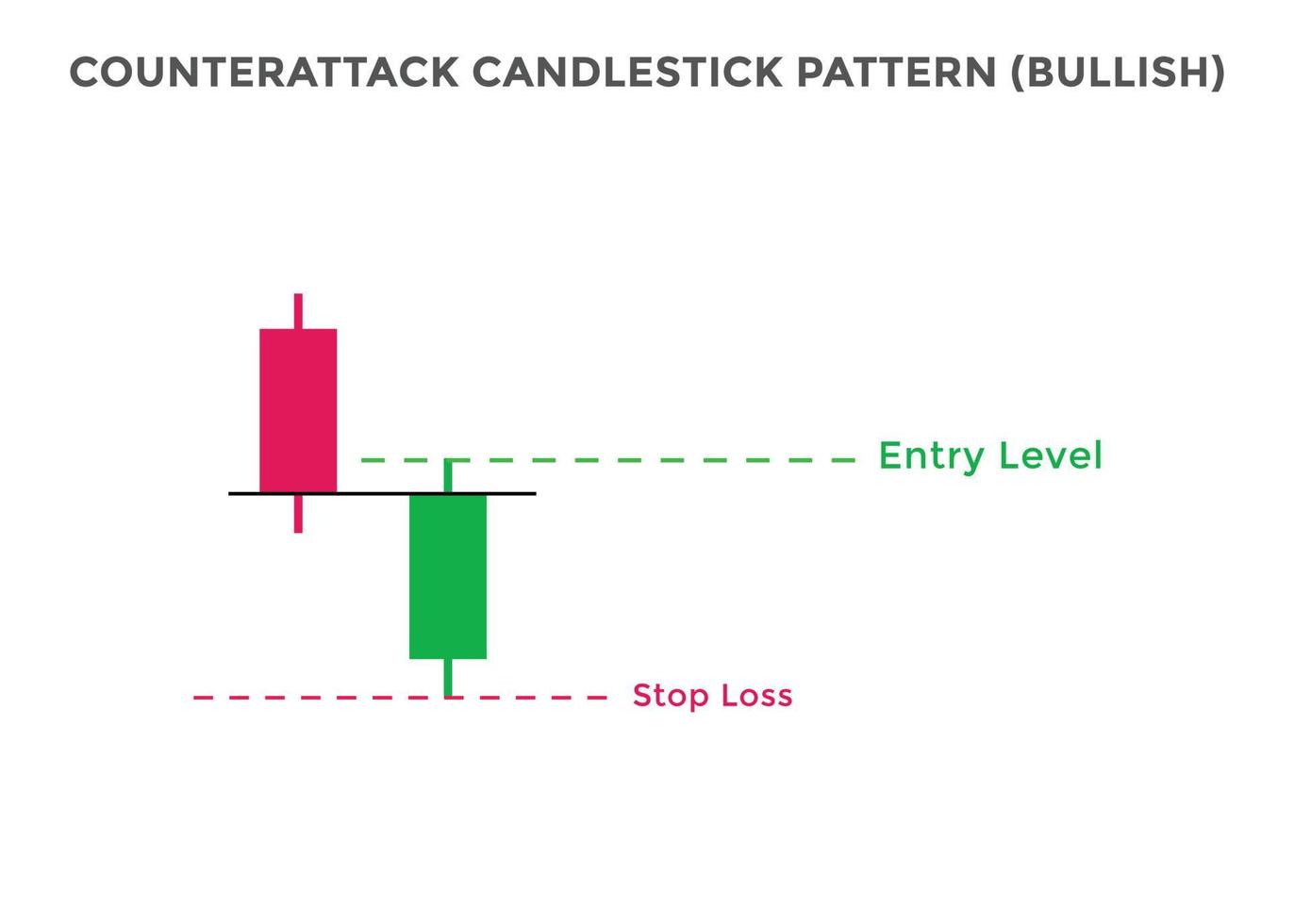Counterattack bullish candlestick chart pattern. Candlestick chart Pattern For Traders. Powerful bullish Candlestick chart for forex, stock, cryptocurrency Pro Vector