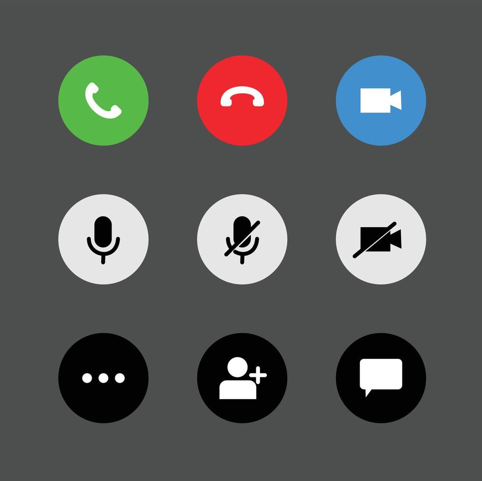 Video call user interface Button collection. Frequently used buttons and icons are set for video calling apps. EPS10 editable icon vector Free Vector