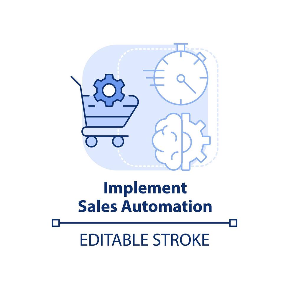 Implement sales automation light blue concept icon. Selling trend abstract idea thin line illustration. Boost performance. Isolated outline drawing. Editable stroke. Pro Vector