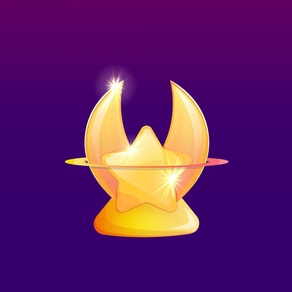 Game rank, star rating for completing levels. Gold, star with wings for game ui design. Cartoon vector illustration. Level up prize. Pro Vector
