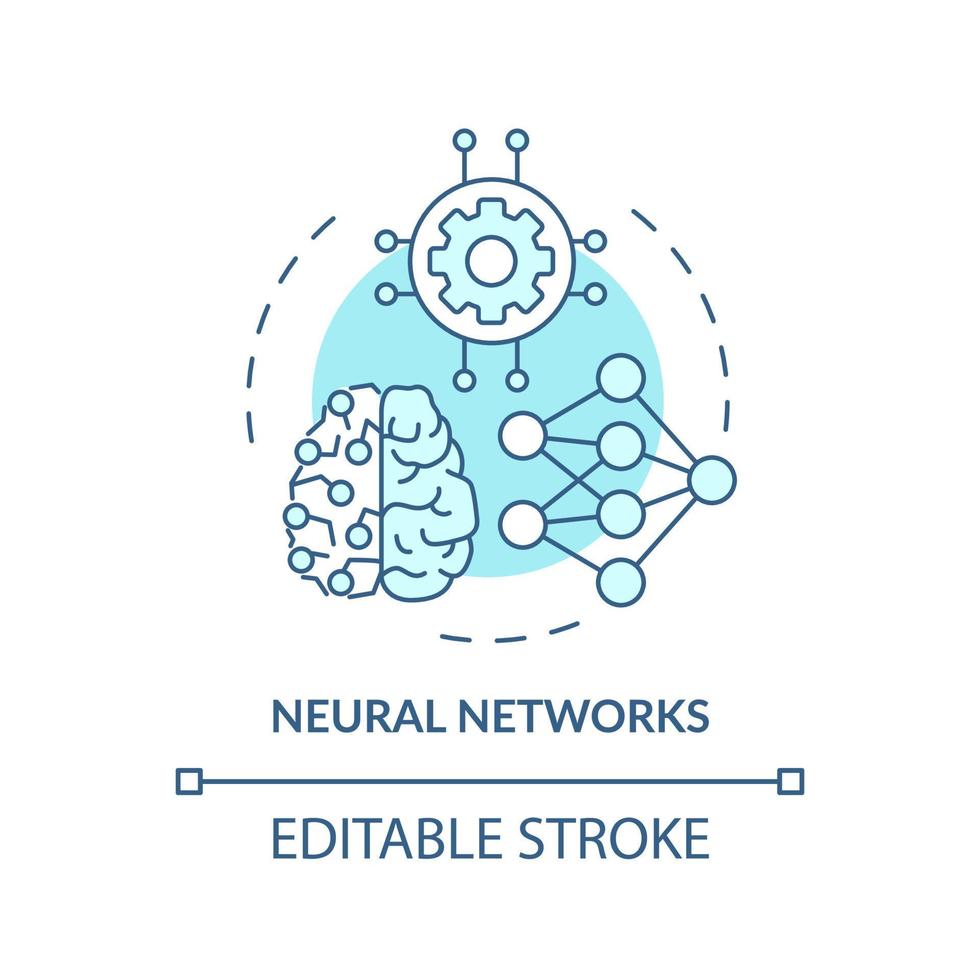 Neural networks turquoise concept icon. Interconnected nodes. Machine learning abstract idea thin line illustration. Isolated outline drawing. Editable stroke. Pro Vector
