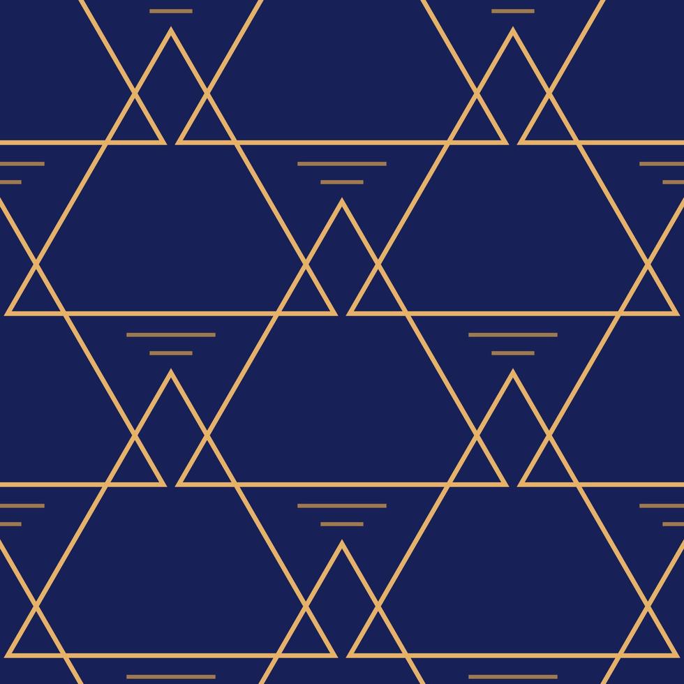 Seamless pattern with golden geometric lines in the form of triangles and dashes on a dark blue background. Pro Vector