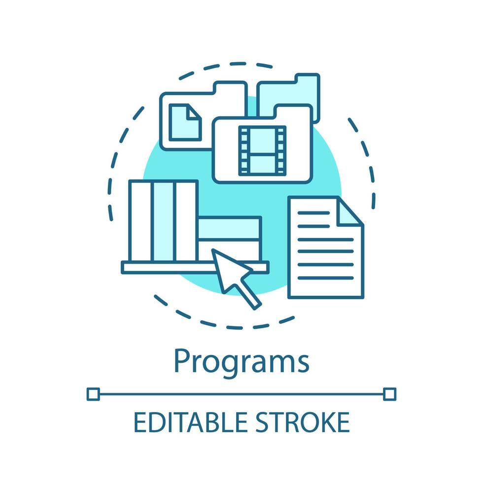 Programs concept icon. Required computer file selection. Electronic documents and folders. Data storage idea thin line illustration. Vector isolated outline drawing. Editable stroke Pro Vector
