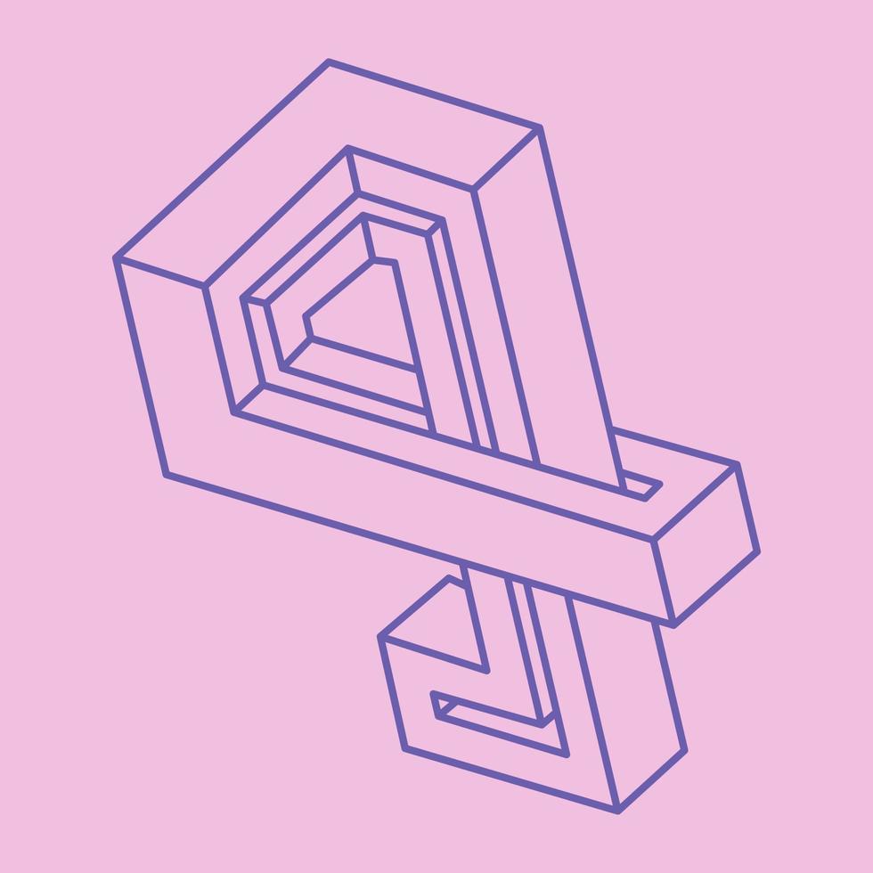Impossible shapes. Sacred geometry. Optical illusion figure. Abstract eternal geometric objects. Impossible geometry shape on a pink background. Optical art pattern. Pro Vector