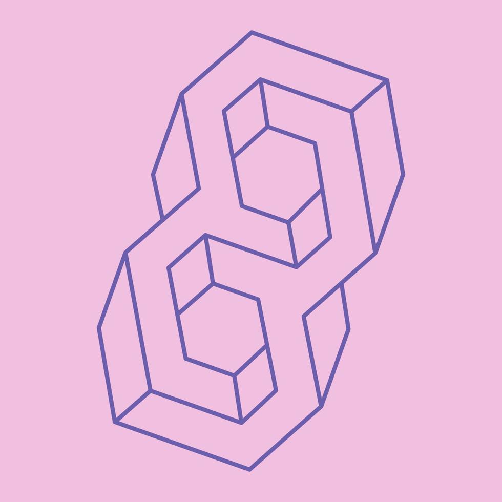 Impossible shapes. Sacred geometry. Optical illusion. Abstract eternal geometric object. Optical art. Impossible geometry symbol on a pink background. Line art. Pattern. Pro Vector