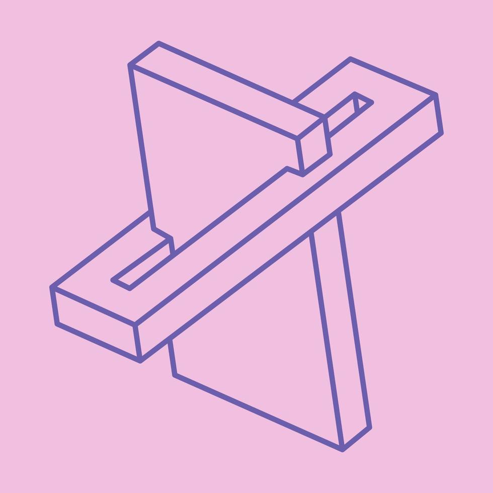 Impossible shapes. Sacred geometry logo. Optical illusion pattern. Abstract eternal geometric objects. Optical art. Impossible geometry symbol on a pink background. Line art. Pro Vector