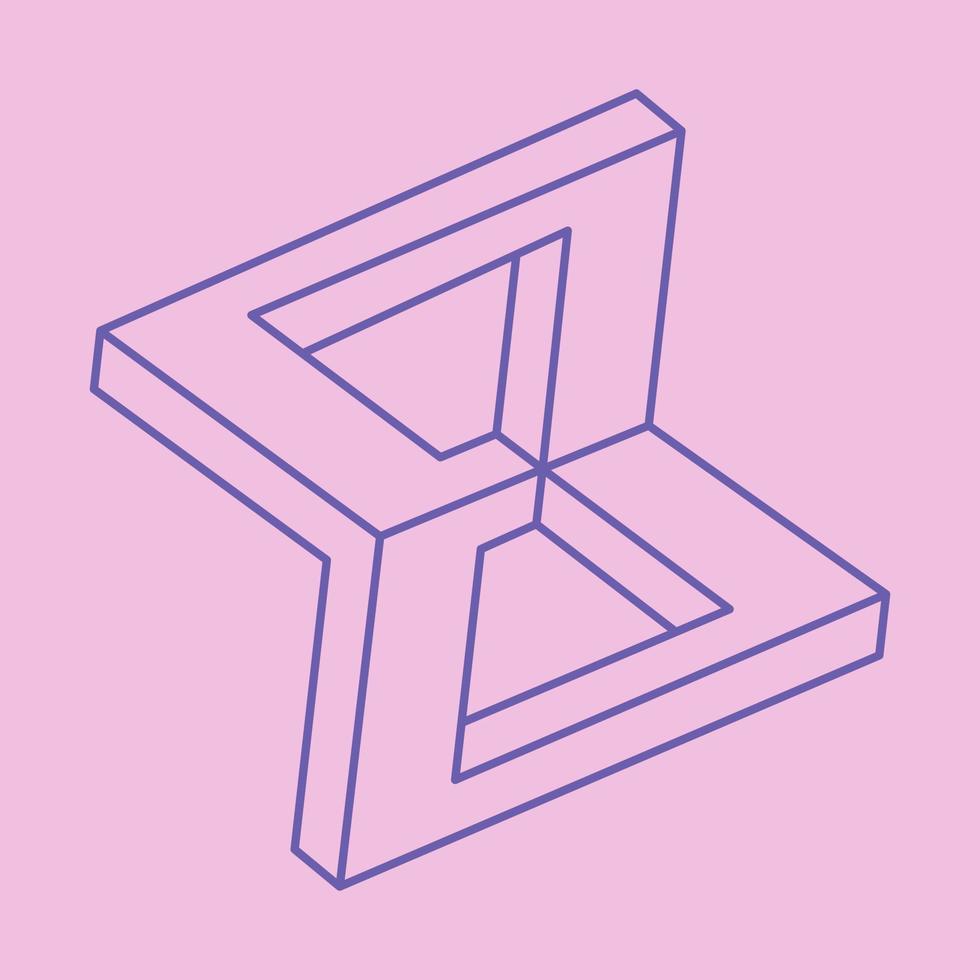 Impossible shapes. Logo. Sacred geometry figure. Optical illusion. Abstract eternal geometric object. Impossible endless outline. Line art. Optical art. Impossible geometry shape on a pink background. Pro Vector