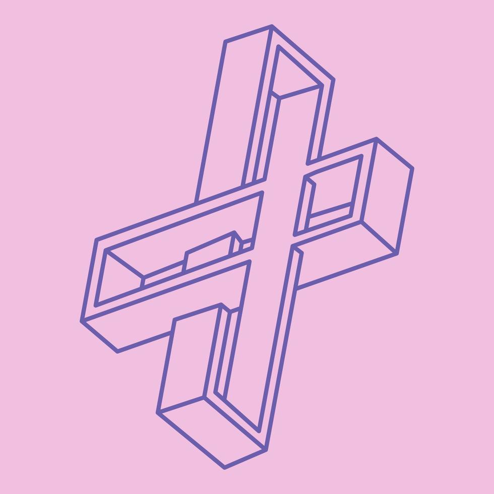 Impossible shapes. Sacred geometry. Optical illusion. Abstract eternal geometric object. Optical art. Impossible geometry symbol on a pink background. Line art. Pro Vector