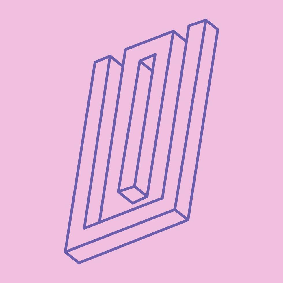 Impossible shapes. Sacred geometry figures. Optical illusion. Abstract eternal geometric objects. Impossible endless outline. Line art. Optical art. Impossible geometry shape on a pink background. Pro Vector