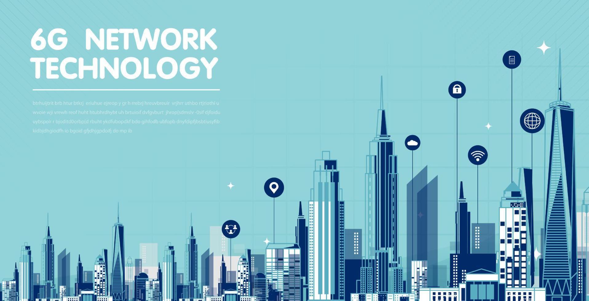 6G technology concept. network technology in city life concept background. global connection and internet network concept, new generation networks. vector design Pro Vector
