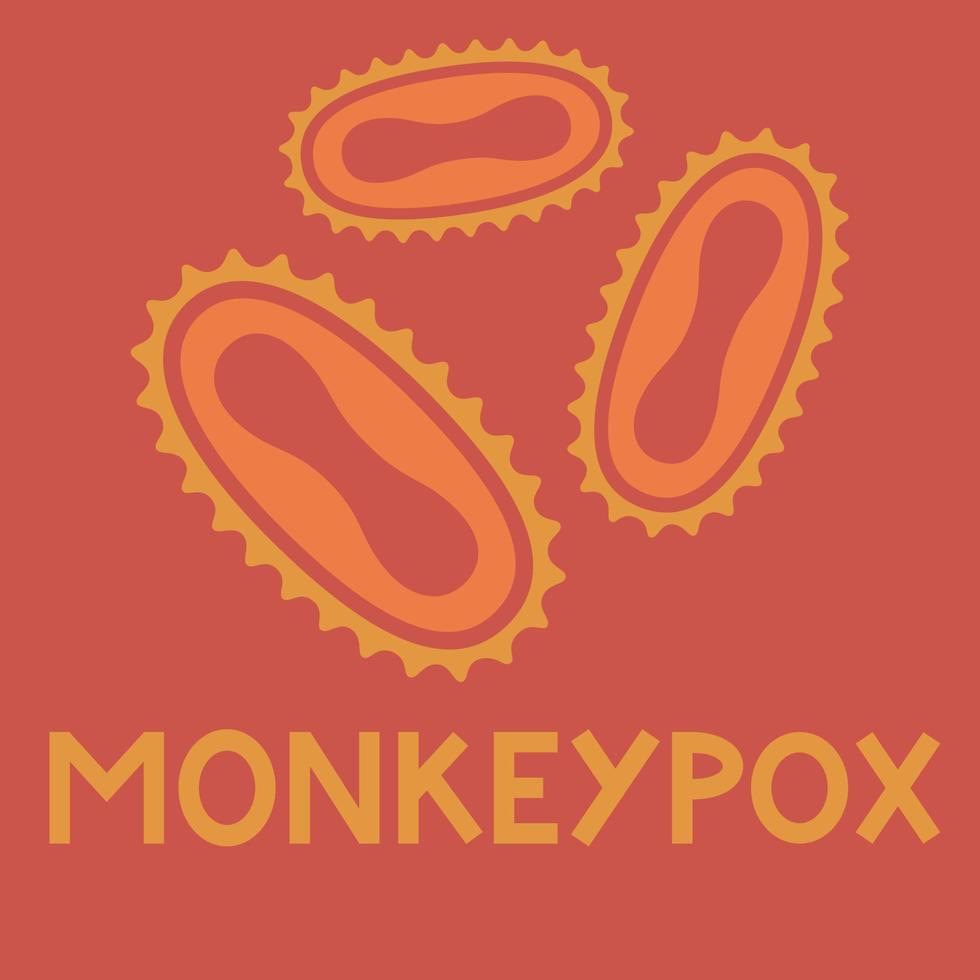 monkeypox with virus cells on red background, new Monkeypox 2022 virus Pro Vector