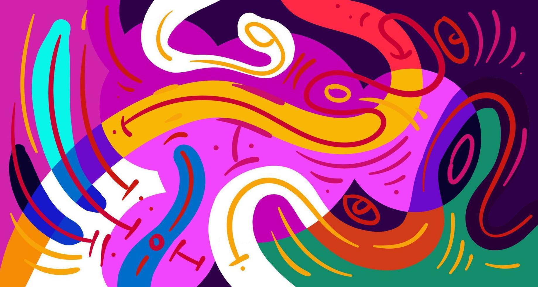 Abstract liquid shape. Fluid geometric design. Isolated gradient waves with geometric lines, dots, batik Indonesia pattern. Vector illustration Pro Vector