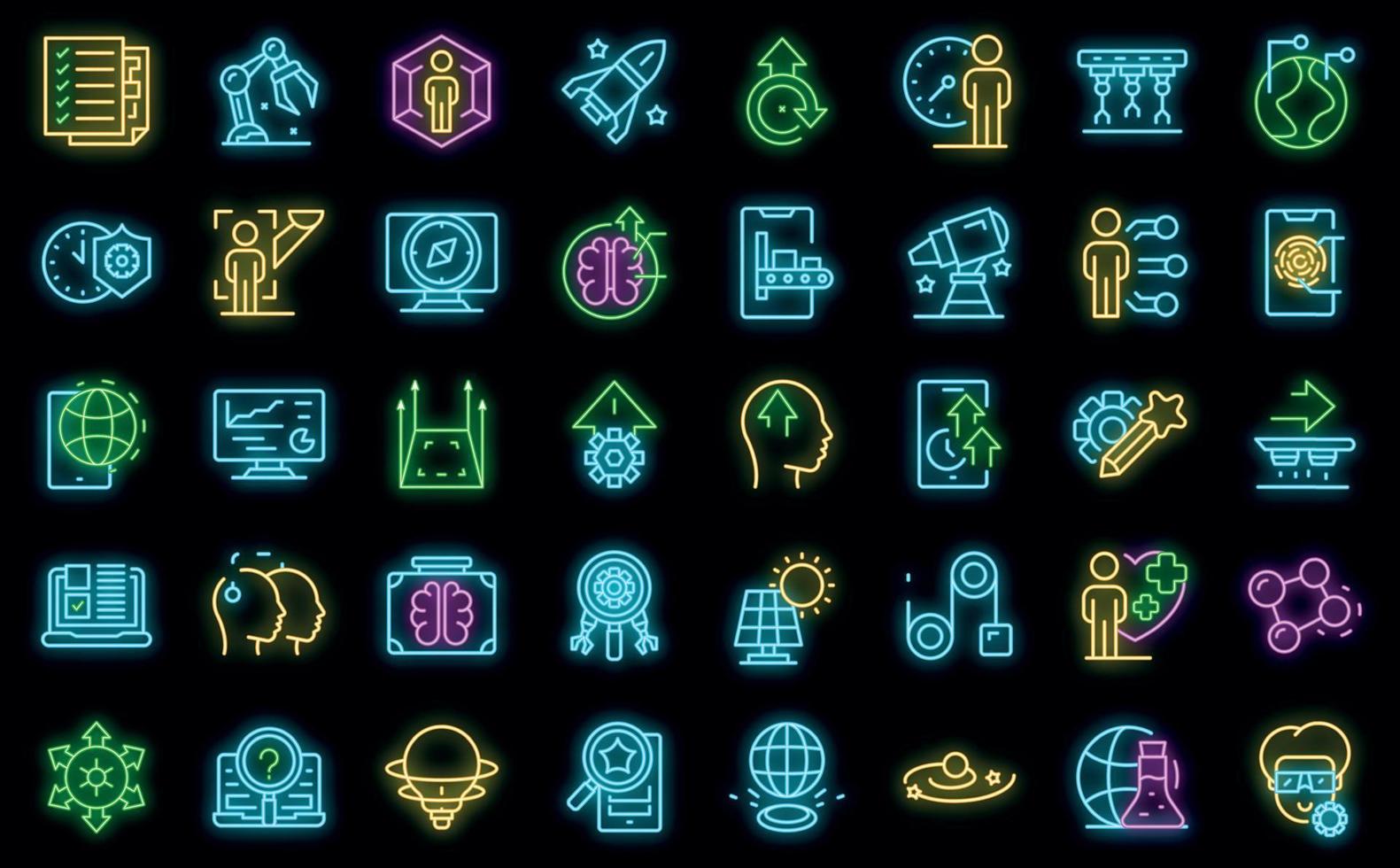 Commitment to innovation icons set outline vector. Passion trust vector neon Pro Vector