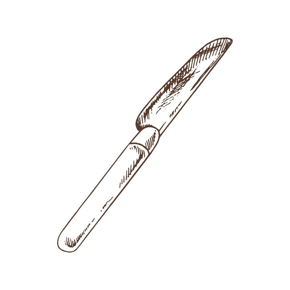 Vector hand drawn illustration of table-knife. Brown and white drawing isolated on white background. Sketch icon and element for print, web, mobile. Pro Vector