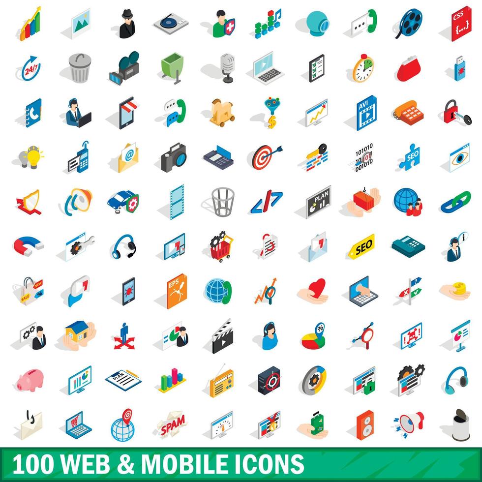 100 web and mobile icons set, isometric 3d style Pro Vector