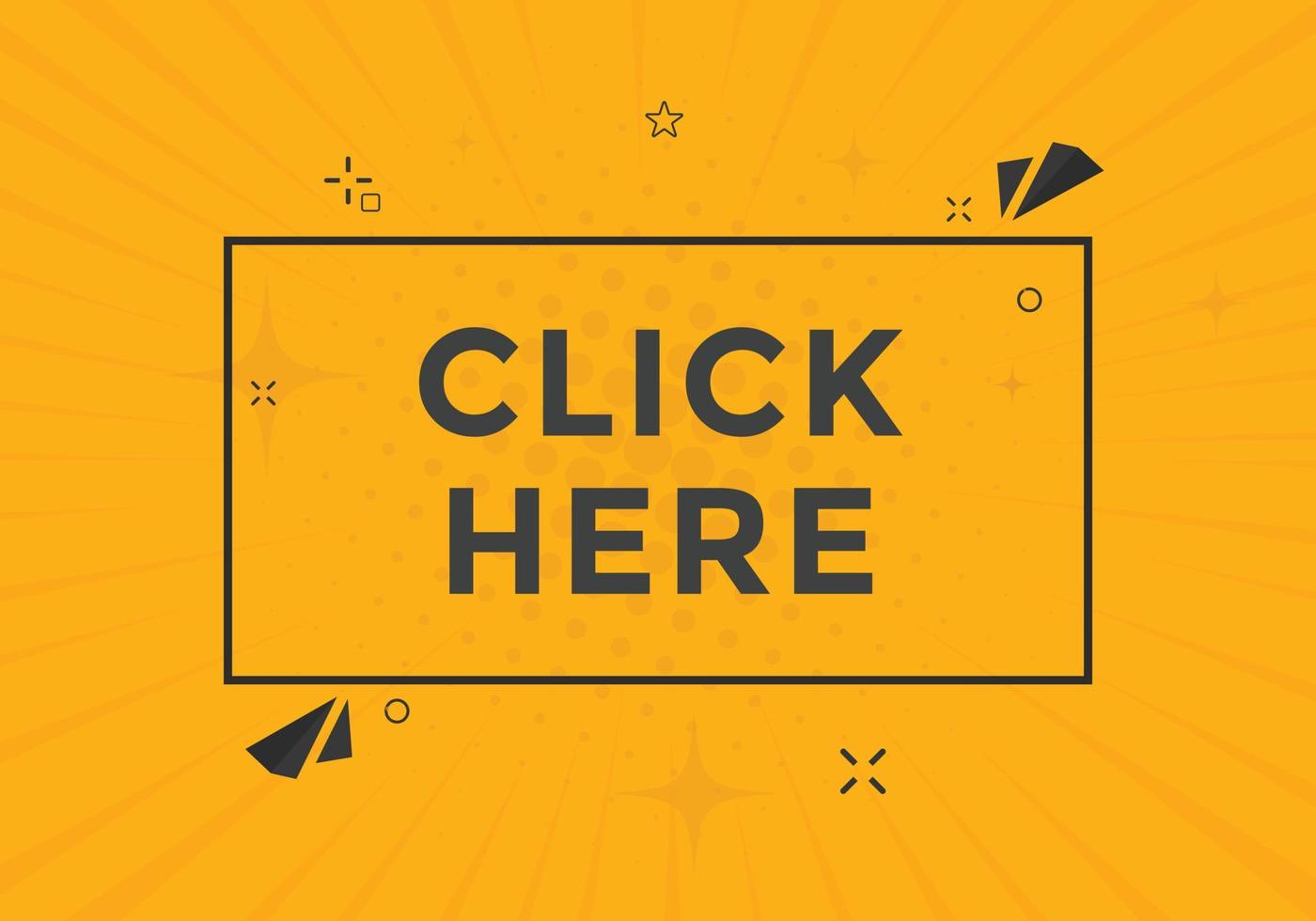 Click here button. Click here text web template. Sign icon banner Pro Vector