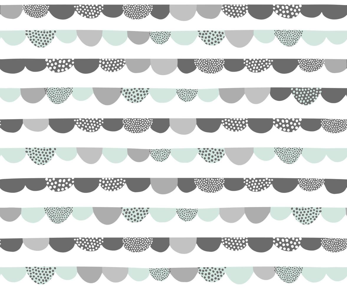 Hand drawn abstract vector pattern in scandinavian style. Doodle semicircle, scallops, arc, dots seamless background. Pro Vector