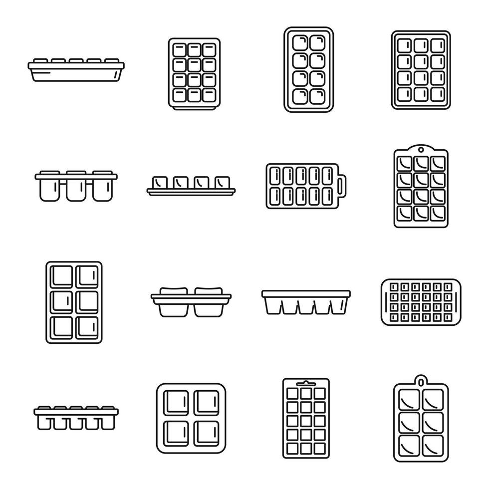 Ice cube trays icons set outline vector. Cool container Pro Vector
