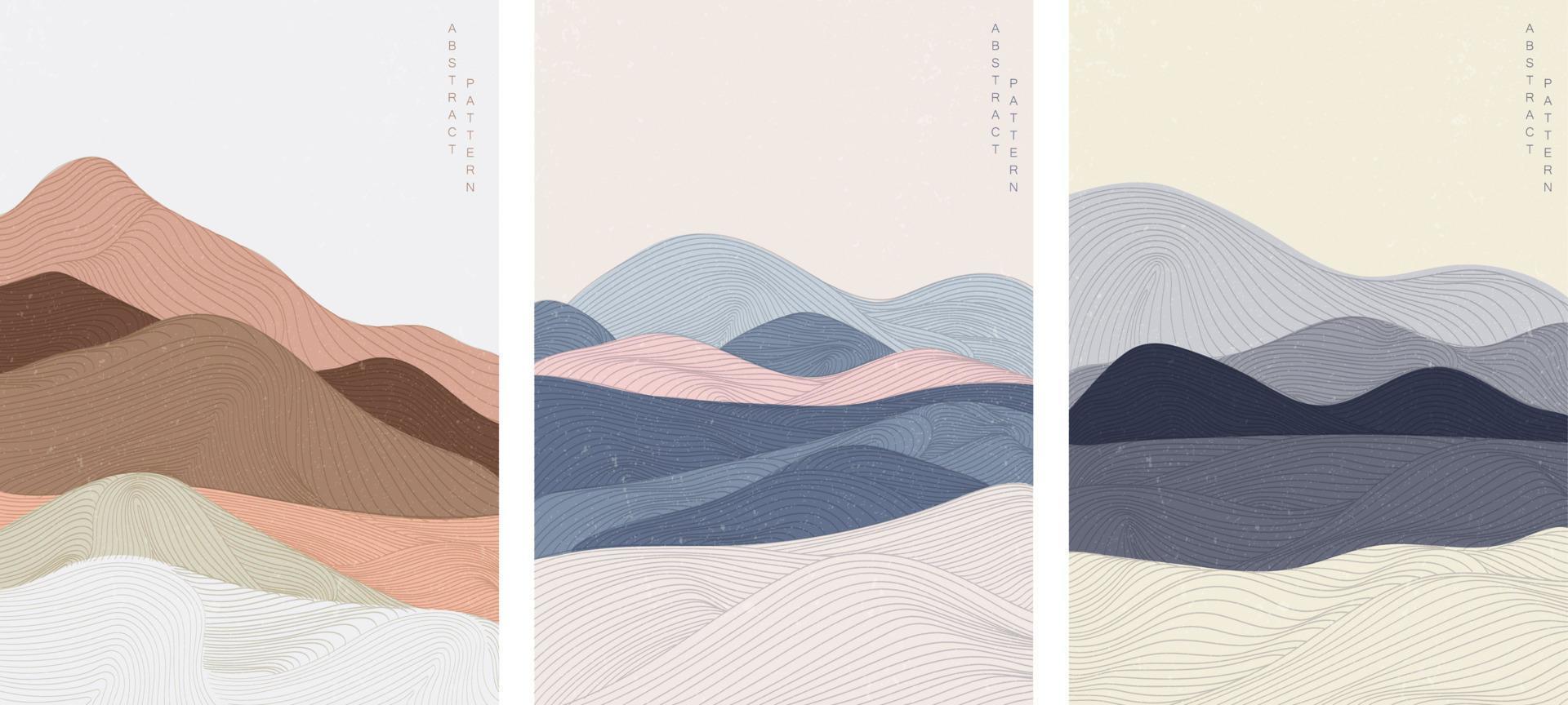 Landscape background with Japanese pattern vector. Curve template with line pattern elements. Pro Vector