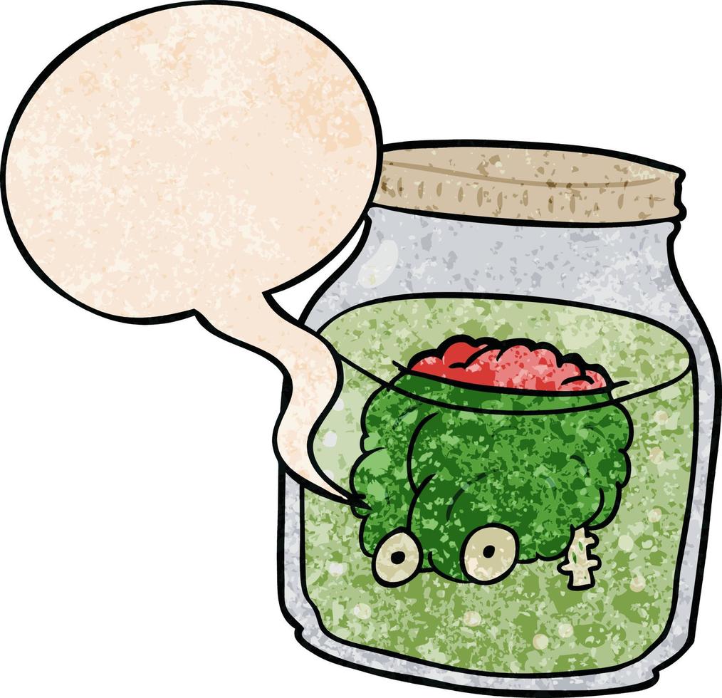 cartoon spooky brain floating in jar and speech bubble in retro texture style Pro Vector