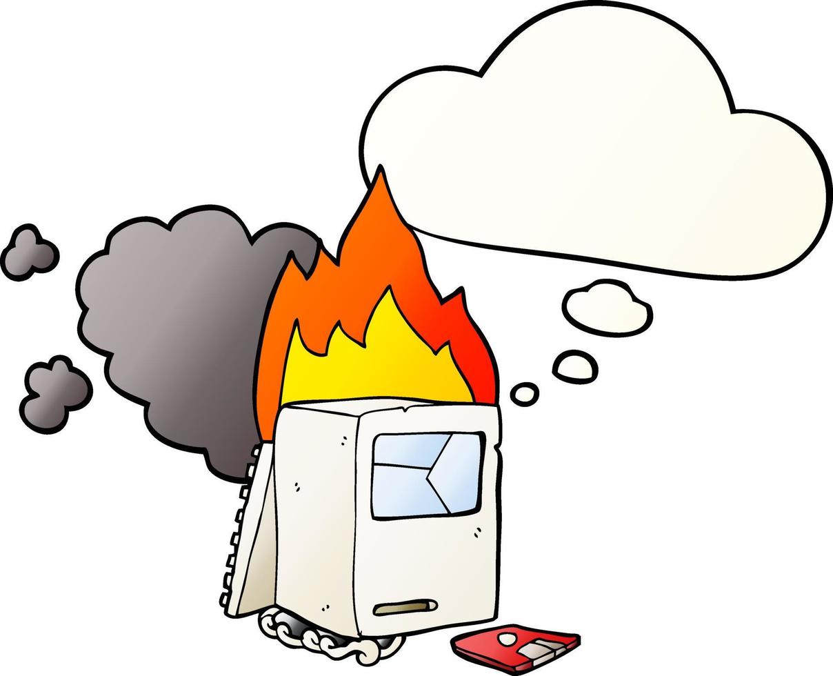 cartoon broken computer and thought bubble in smooth gradient style Pro Vector and Pro SVG