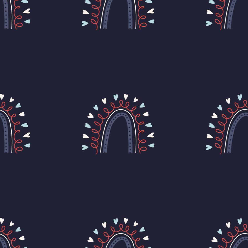 Rainbow seamless pattern. Simple tiled rainbow pattern with hearts and thin lines. Pro Vector