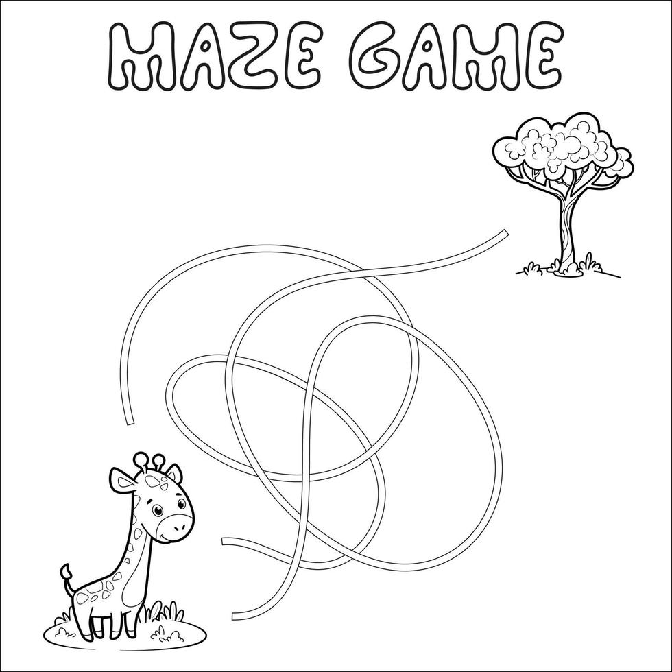 Maze puzzle game for children. Outline maze or labyrinth. Find path game with giraffe. Pro Vector