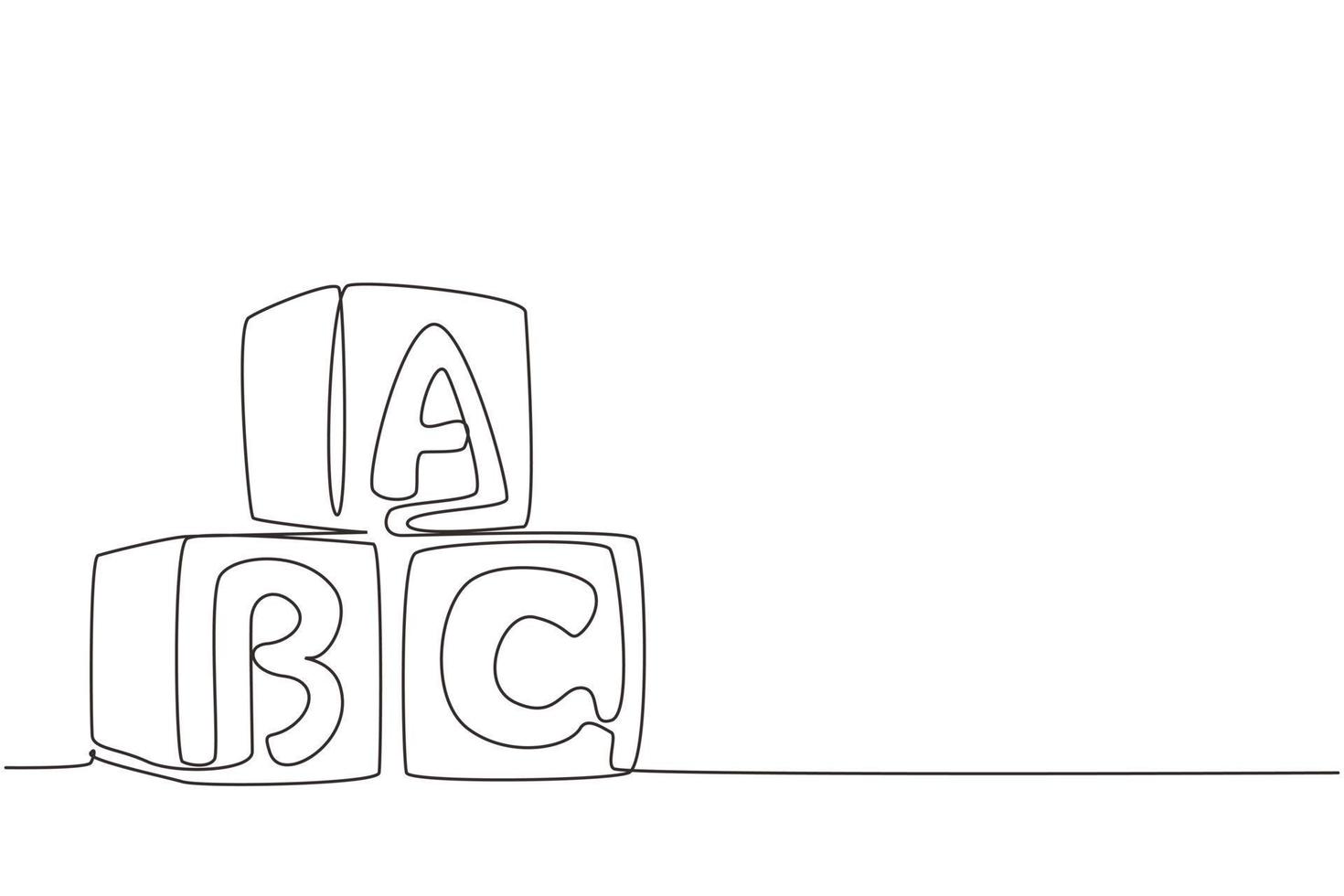 Single one line drawing alphabet cubes with letters ABC. Block building tower. ABC letters building blocks. Alphabet cubes with letters. Modern continuous line draw design graphic vector illustration Pro Vector
