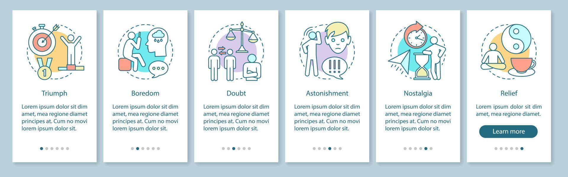Emotions onboarding mobile app page screen vector template. Feeling management. Mental health. Walkthrough website steps with linear illustrations. UX, UI, GUI smartphone interface concept Pro Vector