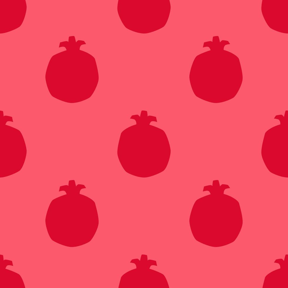 Red Pomegranate Seamless Pattern, in Flat Design Style. Hand Drawn Pomegranate Fruits on Red Background, Simple Repeating Design. Summer Illustration Pro Vector