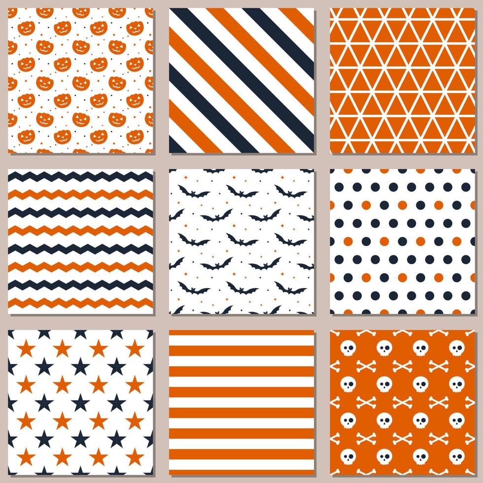 Nine different seamless patterns for Halloween. Endless texture for wallpaper, web page background, wrapping paper and etc. Vector design template. Pro Vector