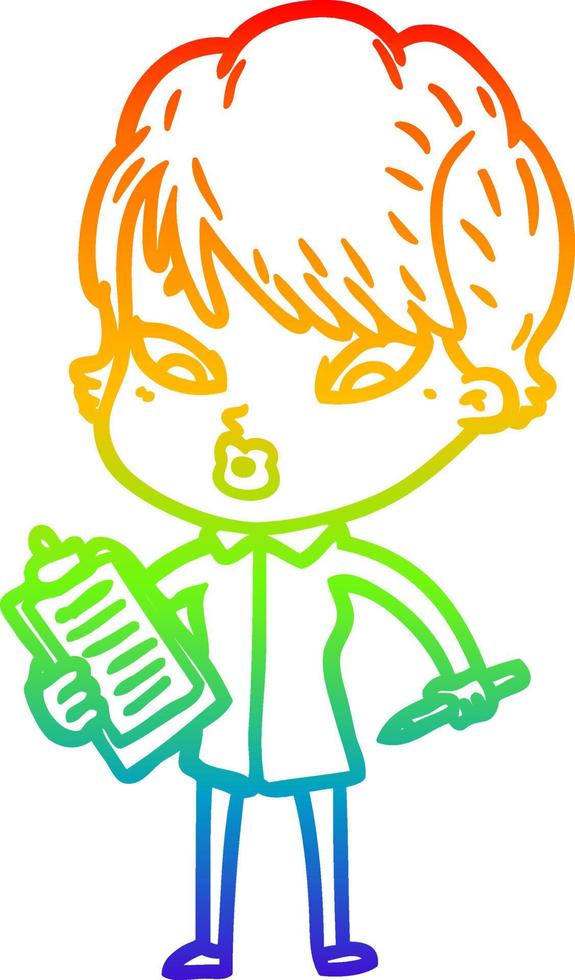 rainbow gradient line drawing cartoon woman Pro Vector and Pro SVG