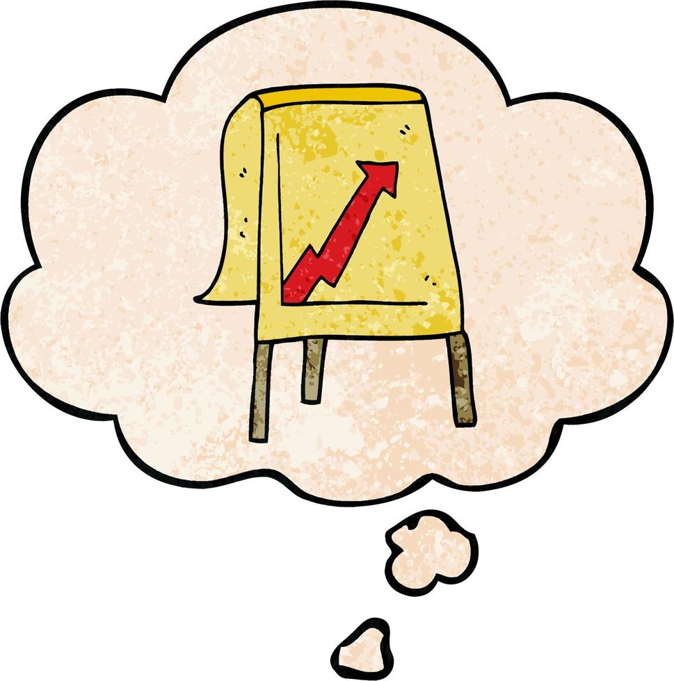 cartoon business chart with arrow and thought bubble in grunge texture pattern style Pro Vector