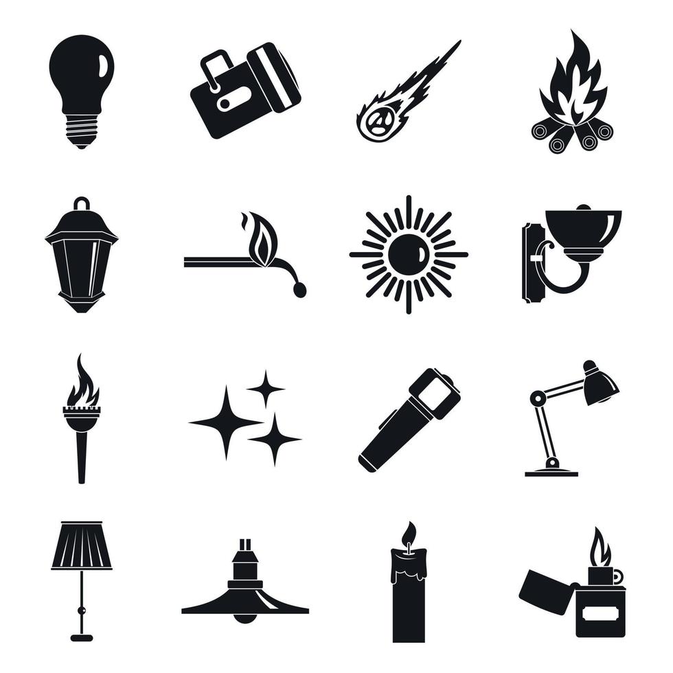 Light source symbols icons set, simple style Pro Vector