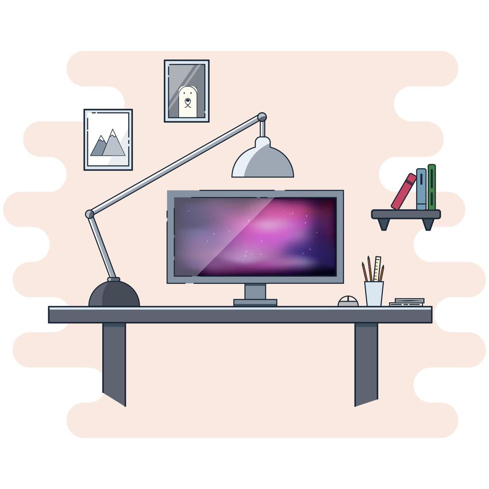 Flat icons design for modern home office concept. Workplace for graphic designer and photographer use for web template banner and presentations. Pro Vector