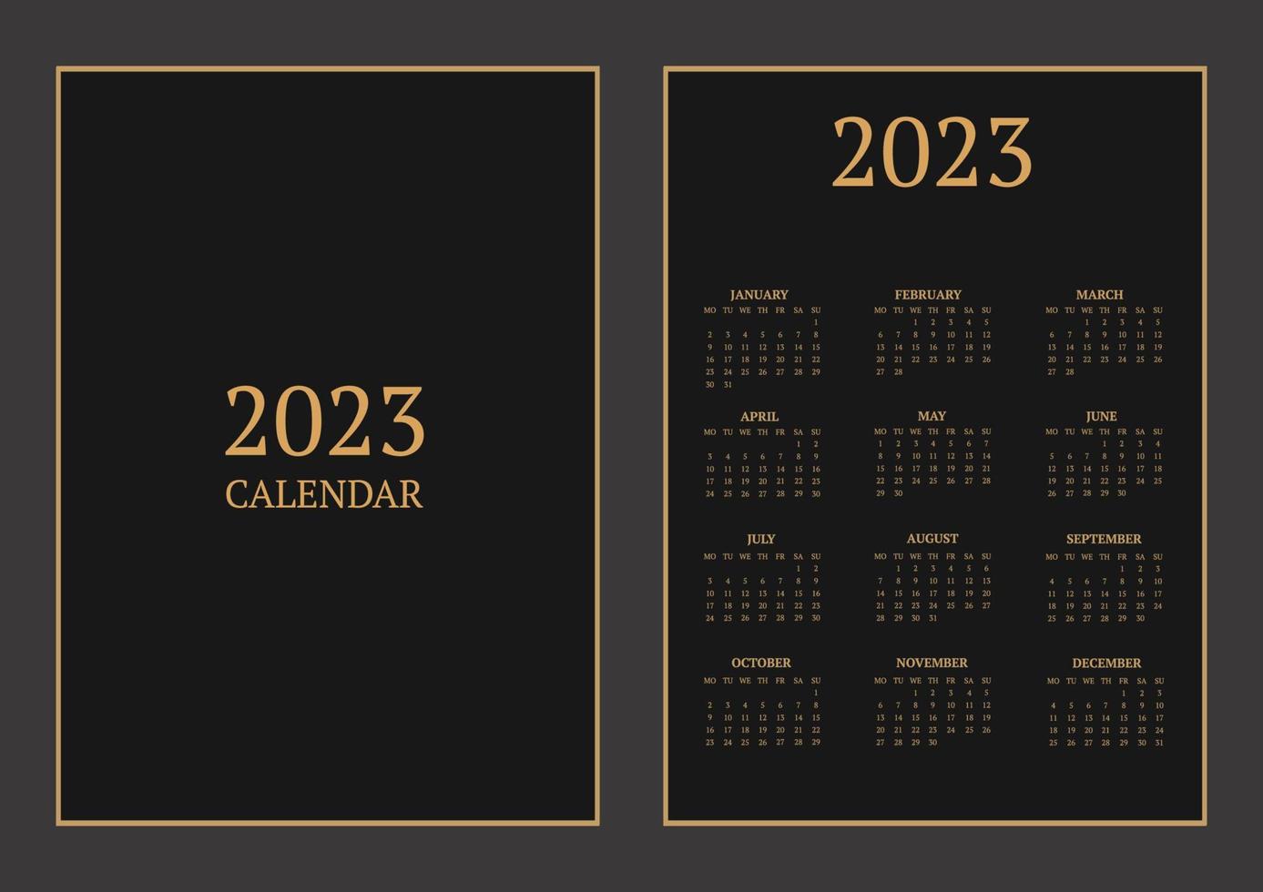 classic monthly calendar for 2023. A calendar in the style of minimalism of a square shape. Calendar template Pro Vector