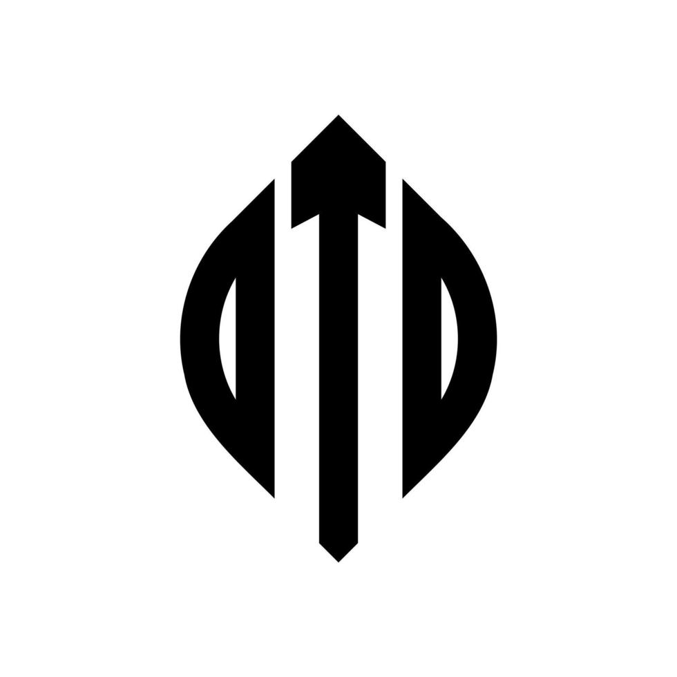OTD circle letter logo design with circle and ellipse shape. OTD ellipse letters with typographic style. The three initials form a circle logo. OTD Circle Emblem Abstract Monogram Letter Mark Vector. Pro Vector
