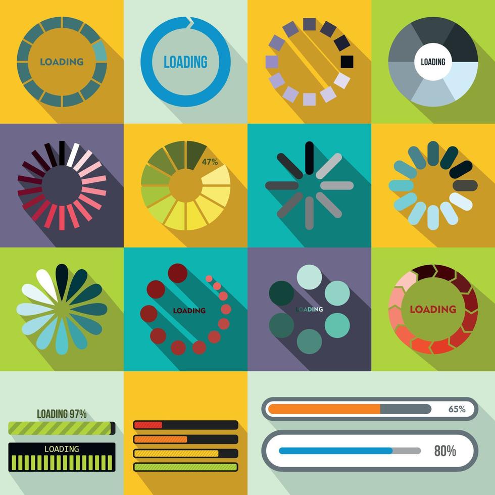 Progress bar and loading icons set, flat style Pro Vector
