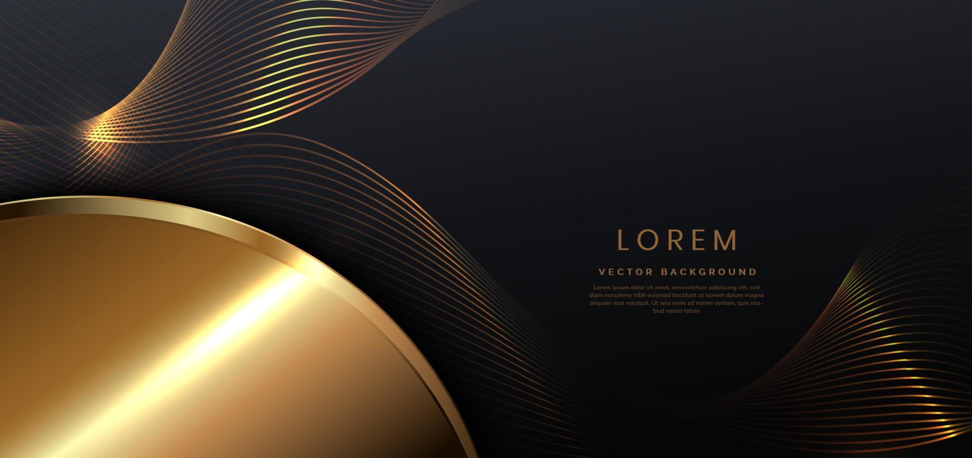 Abstact 3d luxury black curve with border golden curve lines elegant and lighting effect on black background. vector