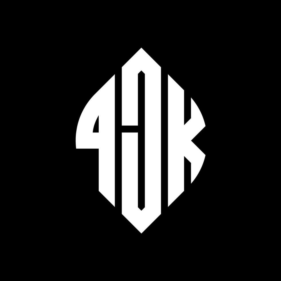 QJK circle letter logo design with circle and ellipse shape. QJK ellipse letters with typographic style. The three initials form a circle logo. QJK Circle Emblem Abstract Monogram Letter Mark Vector. Pro Vector