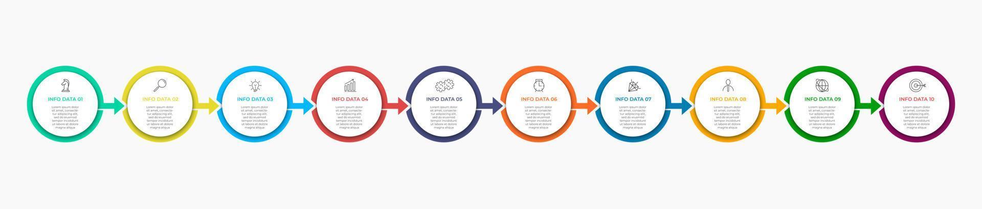 Minimal Business Infographics template. Timeline with 10 steps, options and marketing icons .Vector linear infographic with two circle conected elements. Can be use for presentation. Pro Vector